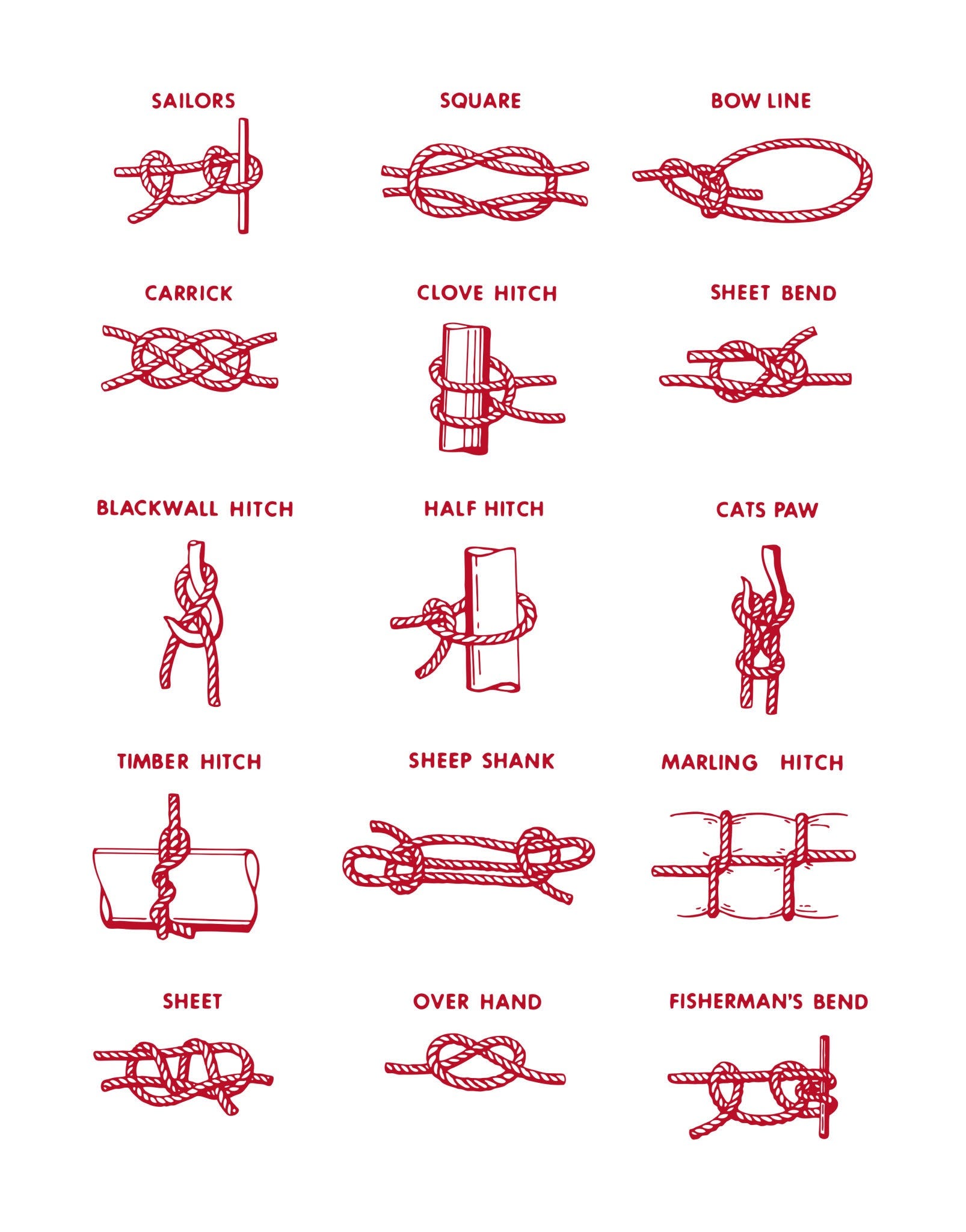 Ropework (The Essential Five) - Tie a Bowline, Taut-line Hitch, Sheet Bend, Butterfly Loop, and Trucker’s Hitch. Also, know which situation to use which knots.