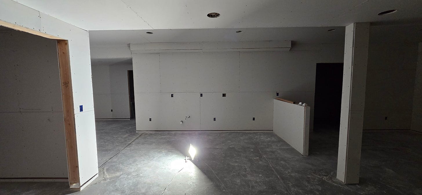 //Drywall progress of our wet bar area