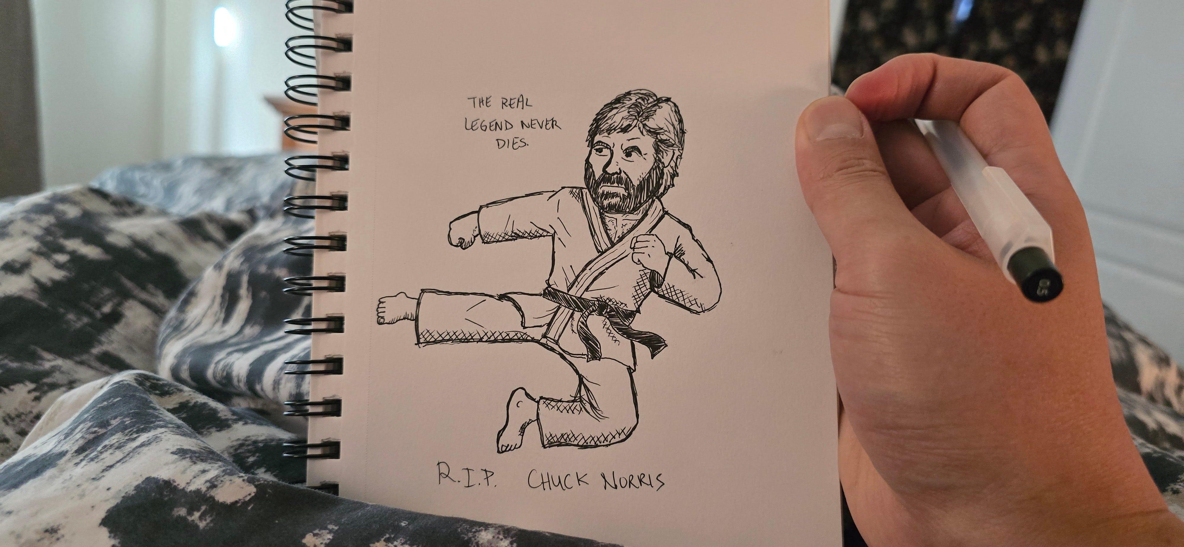 //IRL drawing of Chuck Norris (but I may have accidentally drawn that flannel wearing meme dude that gives a thumbs up)