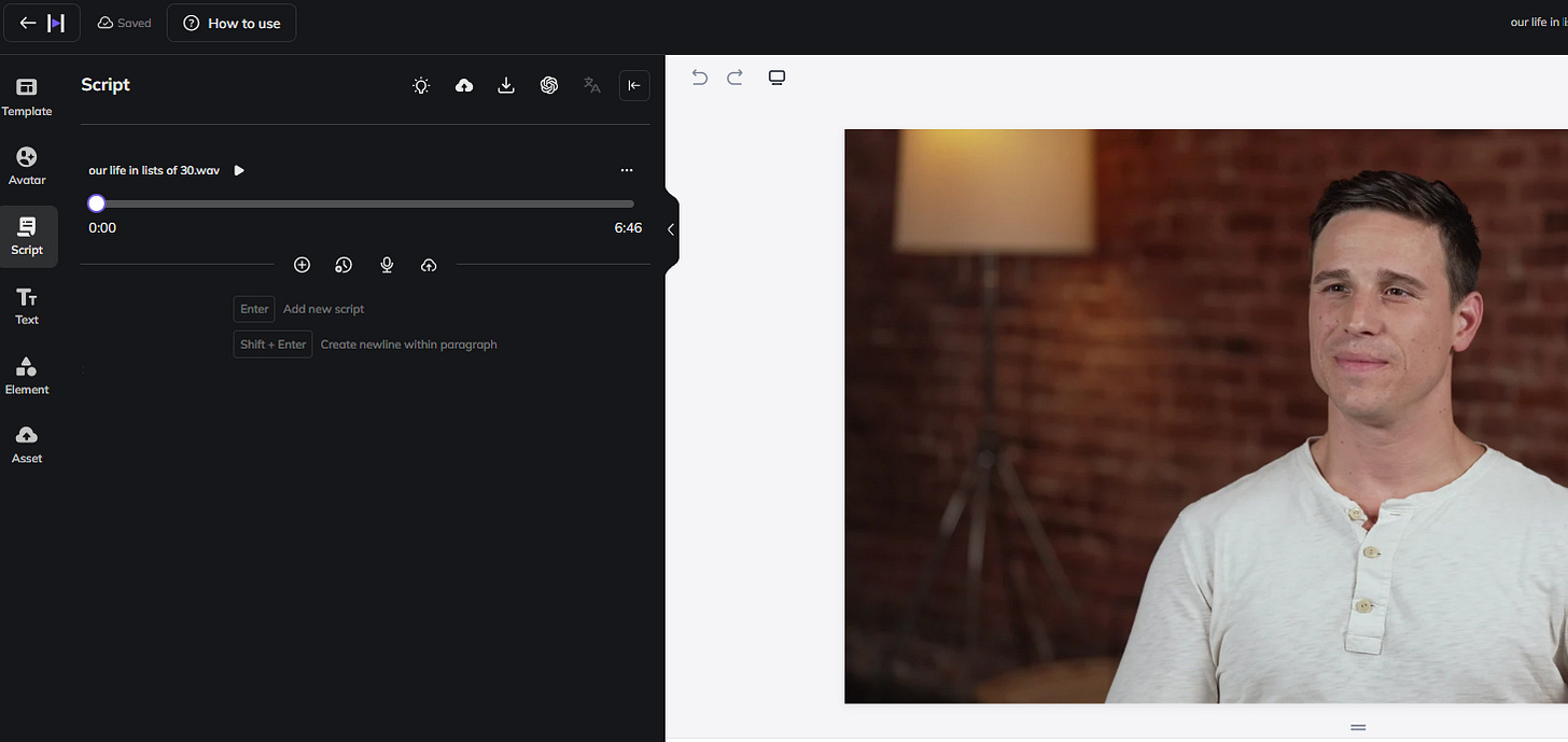 The creation of the video is pretty intuitive. You can just upload the audio directly or write out your transcript.