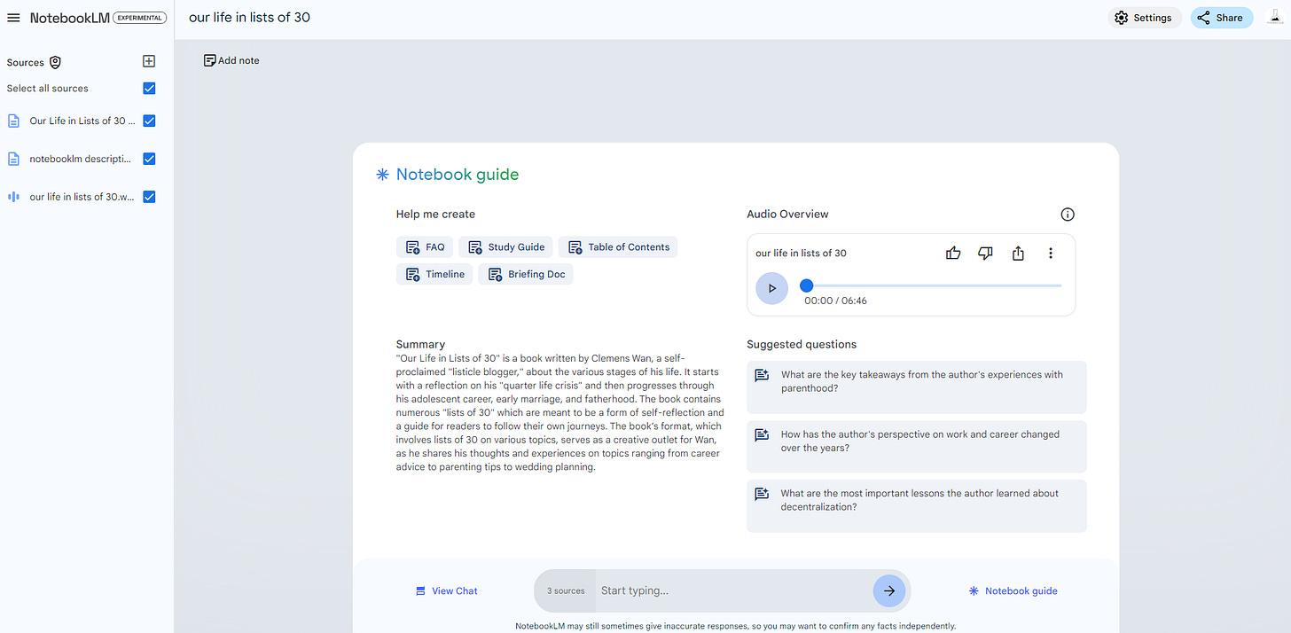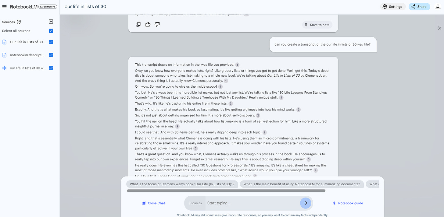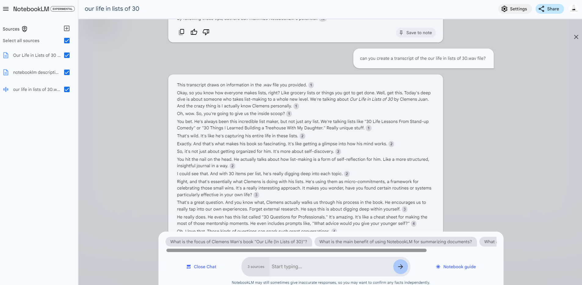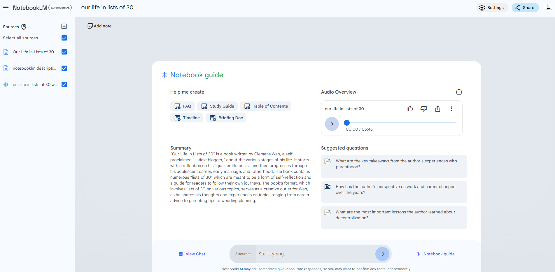 NotebookLM’s Audio Overview about Our Life in Lists of 30
