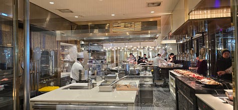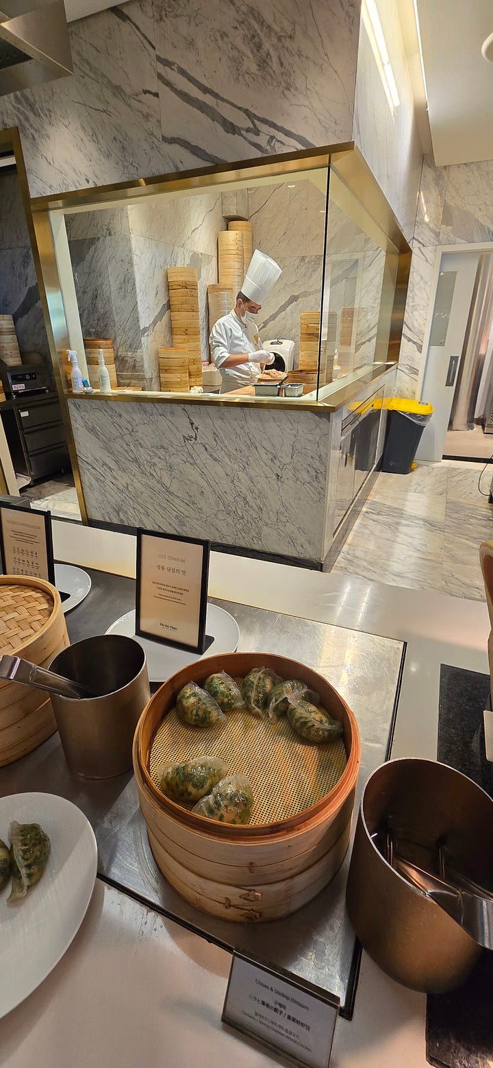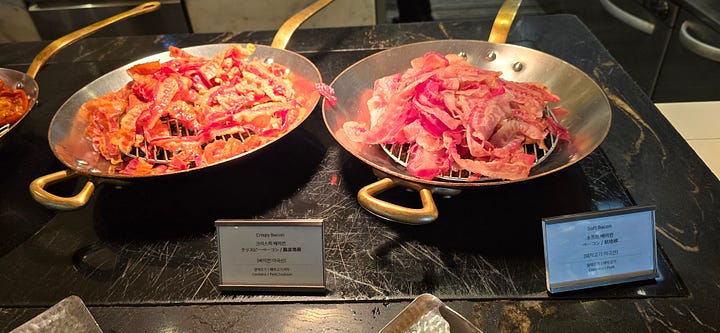 On the Plate - Breakfast Buffet at Paradise Hotel is so good. Fresh dim sum, which I dipped in the sauce of a braised Taiwanese Pig knuckle dish. Also, you know the buffet is good if you can get both crispy and non-crispy bacon options.