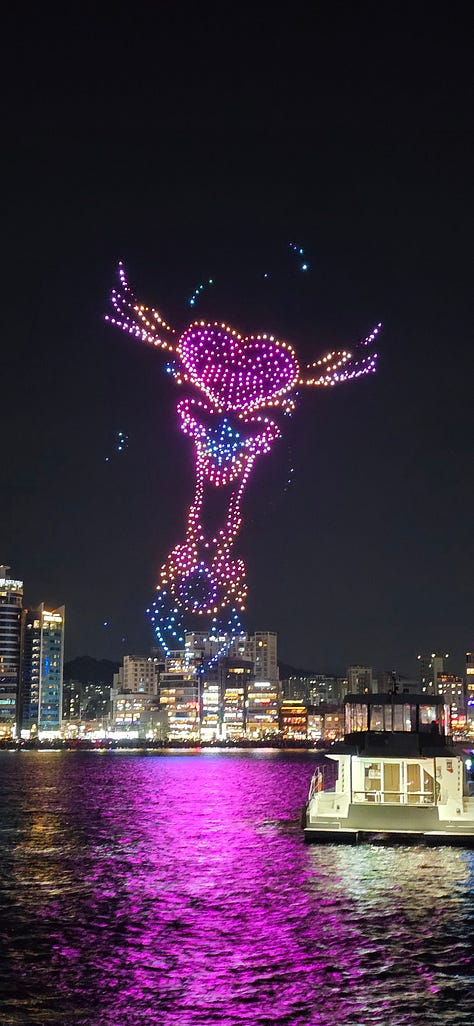 Boat and Drone show - Left from Suyeongman Bay and had a 1.5 hour ride around. Many thanks to the bride and groom for organizing it!