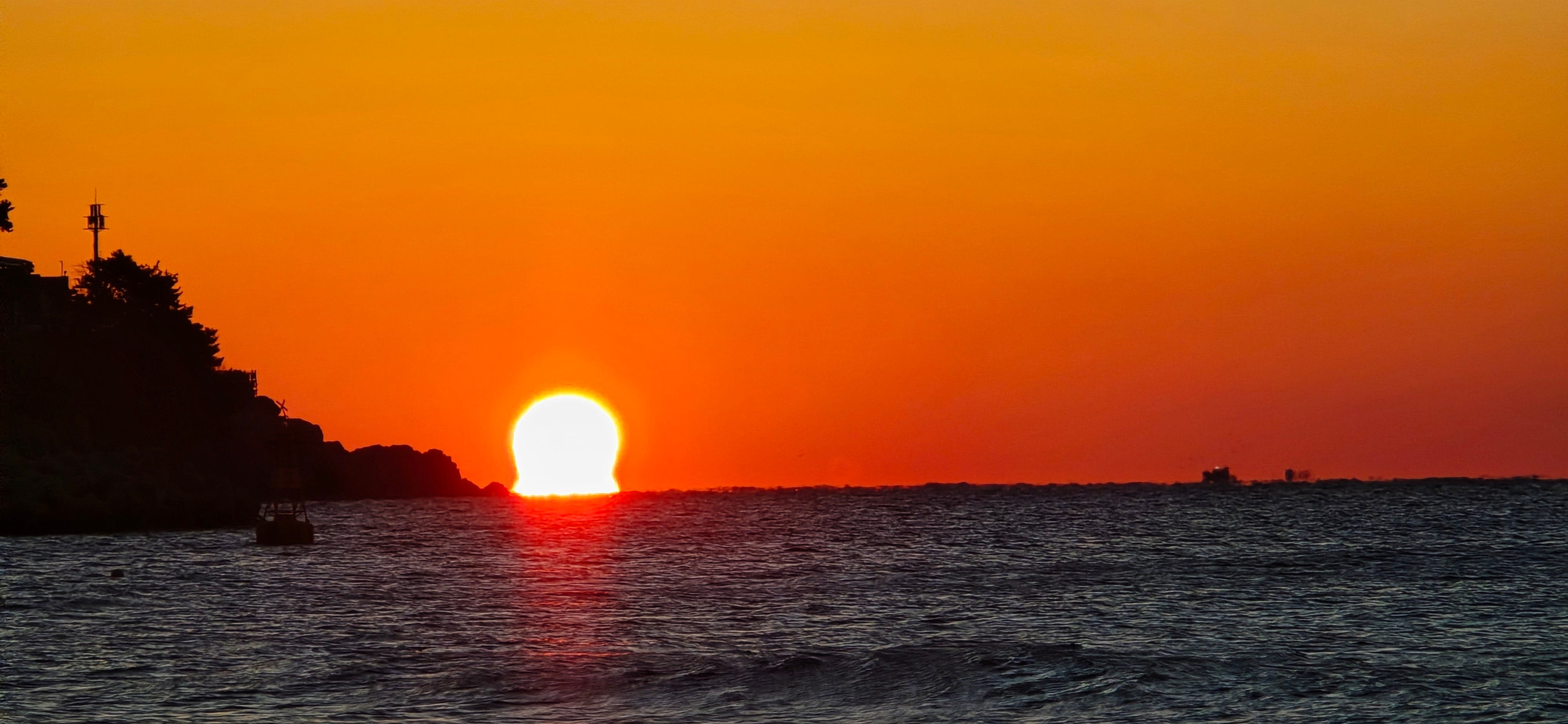 Sunset near lighthouses - The eye of Sauron! If you walk to the white lighthouse, you can see the sunset directly over the observatory.