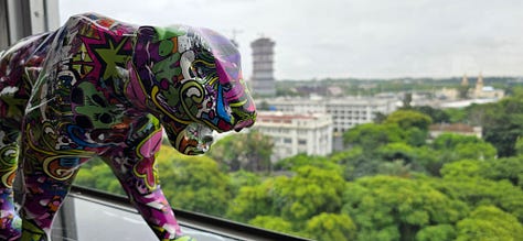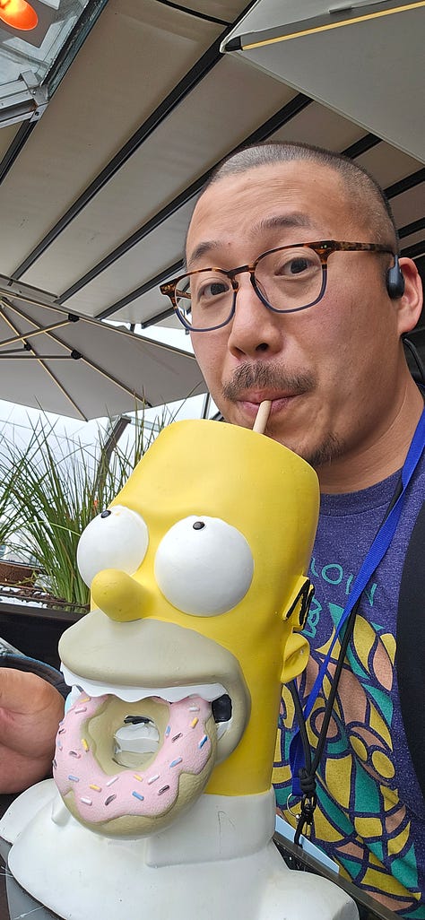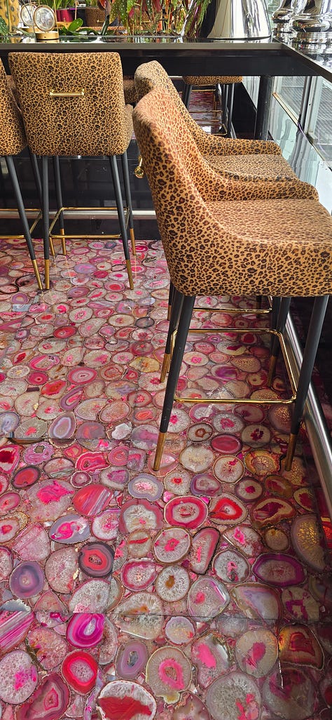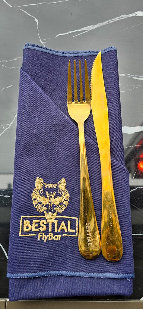 Bestial Fly Bar - I came here for lunch because it was close to the venue. What in the world… Look at the flooring, leopard print, and giant head drinks. Rooftop bar with a nice view. So corny, but also so cool.