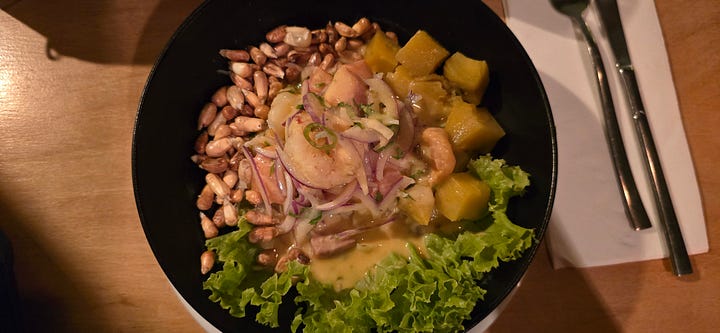 La Causa Nikkei - Ceviche, sushi, and drinks. I’m just not a fan of sushi with cream cheese inside, but I guess the locals like it.