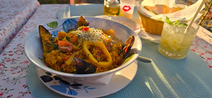 Restaurant Amor Amor - What a beautiful place. I was the only one there because most people were at a restaurant right West of it which had a beautiful view of the sunset. I purposeful do not like crowds, so this was perfect. I got another seafood paella, which was absolutely delicious. Highly recommended.